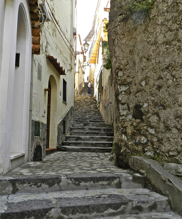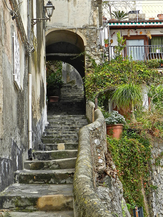 The bus trip to the town of Amalfi, along the famed Amalfi Coast road was stimulating. It’s a very narrow winding cliff-hanger of a road with spectacular views. Don was completely relaxed. I was a bit tense. It reminded me somewhat of a time in Vietnam. We’d been hiking through the mountains all day and got a ride on the back of motorbikes back to the town we were staying in. I was handed a helmet that had no inner lining, was way too big, and the strap couldn’t be adjusted. It was like having a metal bowl sitting on my head. Very narrow roads full of ruts and potholes. Crazy traffic. I sat on the back of that bike and handed my life over to the gods. The Amalfi coast was quite tame really after that, but it didn’t stop me tensing a little every time the bus went round a blind curve. Which was often. And we got the very front seats in the bus so could see everything. Including all the blind curves. Fabulous!