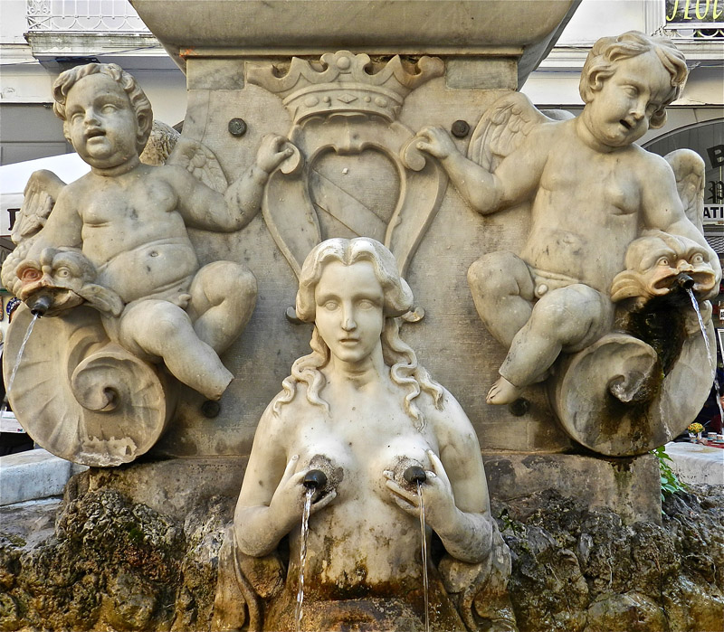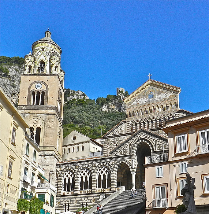 Amalfi is a charming coastal town climbing up the cliff side, with a beautiful cathedral and a very intriguing fountain.