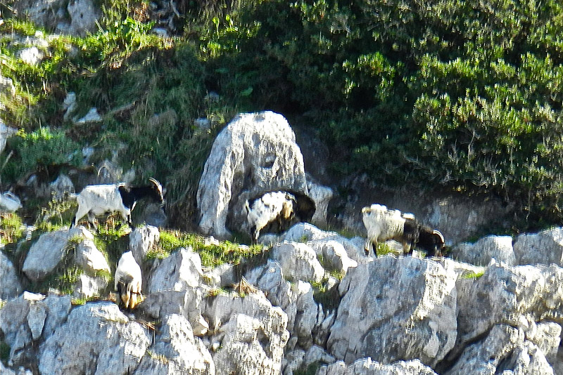 At one point I saw something moving on the cliff, and thought it looked like goats. Given the movement of the boat, and the distance away I was amazed that I actually managed to get a picture of them.