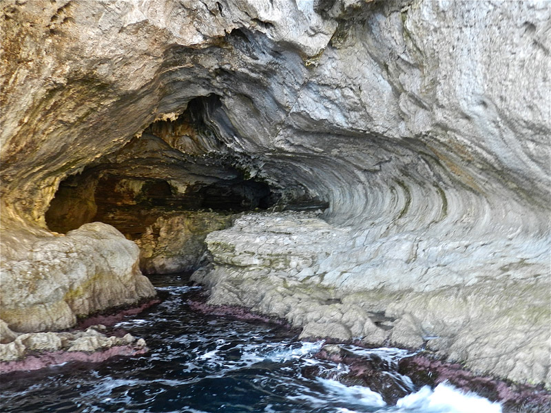 The boat circumnavigated the island, and took us to some of the grottos in the base of the cliffs.