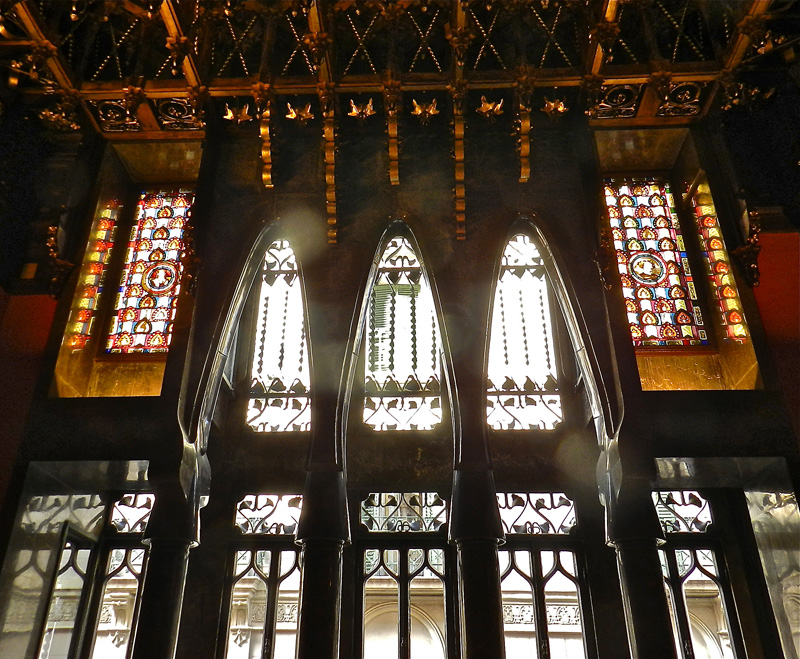 We visited Palau Guell first, an urban mansion designed and built for the Guell family in 1886-88. My pictures don’t even begin to do it justice. And for me, Palau Guell was the least interesting of the four buildings we visited!