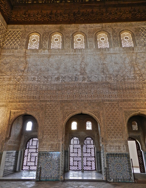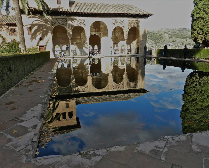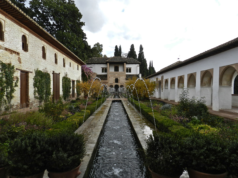 Our third day trip was to see the Alhambra, near Grenada. A long day but really worth it. The Alhambra is a huge complex of 13th and 14th century palaces and gardens, the most spectacular and significant being from the days of the Moorish rule of southern Spain. A breathtaking example of Islamic architecture. Beautiful detailed decoration. Arched windows and colonnades. Fountains and mirror lakes and formal gardens. Everywhere beauty. The whole place is just astonishing. In the way of all palaces and palace complexes, the Alhambra is truly magnificent.