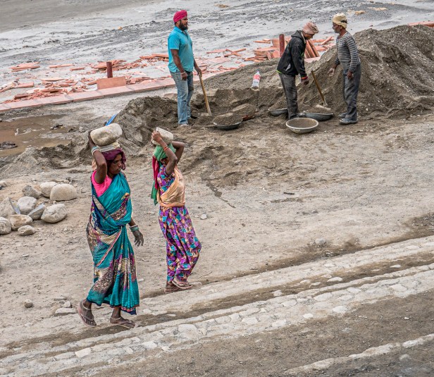 Every single time we have been in India, be it East or West, North or South, we are always struck by the workers. The fact that most construction sight use women is quite astounding and boggles the mind. Women in brightly colored saris balancing heavy loads on their heads, be it bricks or bags of sand. For sure a very hard life.