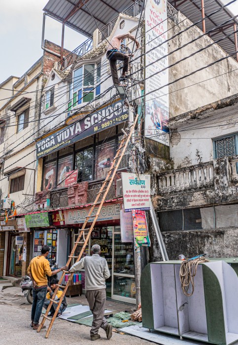 We walk around Rishikesh every day. Like any other place we see people at work – the daily grind, or the daily occupation. Life unfolding. For many people here life is tough. Really tough. Tougher than I’ve ever had to face so I can’t presume to know anything about it other than I think I would break under the unrelenting weight of it. And no doubt some do. But many don’t. Like most people they toil away surrendering to the inevitability of their life. This surrendering is a part of the Indian psyche, and is a part of what makes the country work despite so many reasons why it shouldn’t. Should it be different? Could it be better? That’s not my place to say. It is what it is. India shows itself in all its confounding colours.