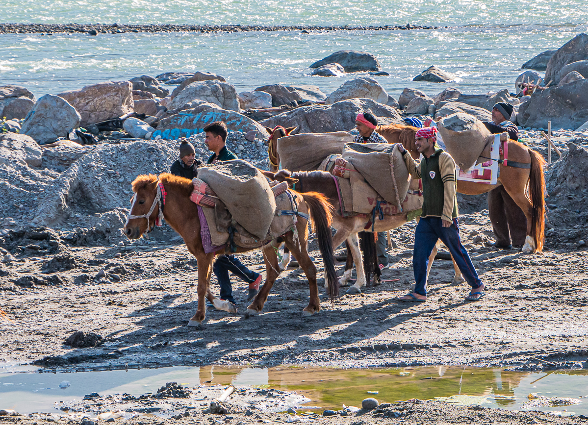 Horses and donkeys are used for hauling sand to, and from, construction sites. Most mornings we’d see them down by the river being loaded up with gravel and then marched promptly off to one construction site or another.