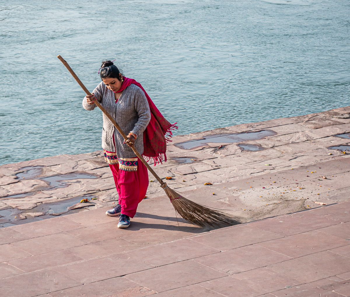 Every morning the dust and debris from the day before is swept off the ghats by the river, only to have more return and be swept up the next day in an endless cycle. India’s dust keeps a lot of people employed.