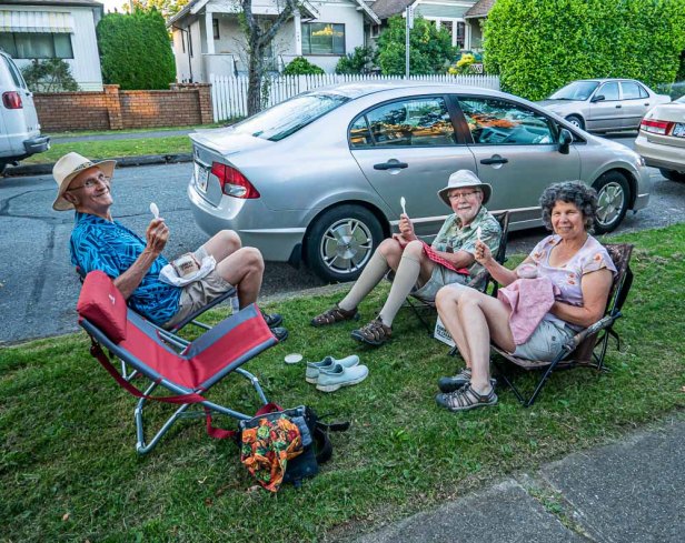 As the weather warmed up we started meeting up more and more. Getting together with Michael and Ricki we went twice to VanDusen Garden for birthday celebrations and flower-worshipping. Several times we met up for ice cream dates. Usually we’d choose a place near a park, but one time the park just seemed too far away and that ice cream, half a pint each, was starting to melt, so we took our picnic chairs from the car and sat down right there on the sidewalk. We know how to have a good time!