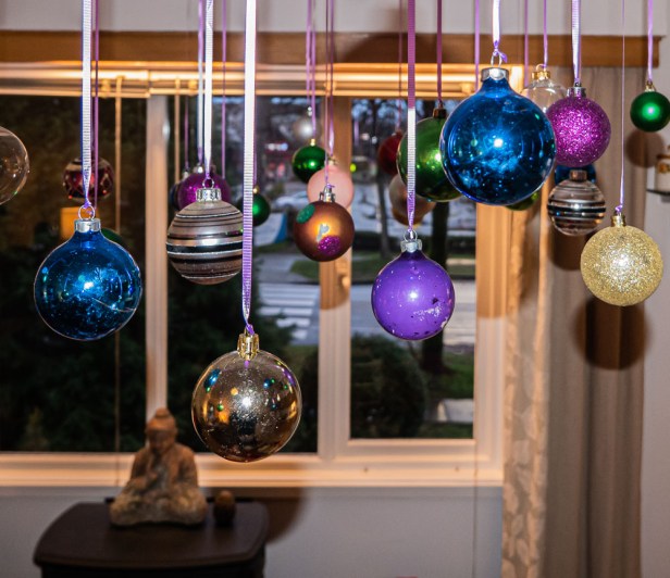 Love the suspended baubles! We only have a tiny tree and I gave my excess to a charity shop last year. 😦 I expect they’d only fall on my head 🙂 🙂 Happy, healthy 2021, Alison and Don!