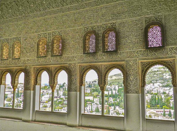 Known as the Alhambra, it is a conglomeration of 13th and 14th century palaces and gardens, the most spectacular and significant being from the days of the Moorish rule of southern Spain. The Alhambra is a breathtaking example of Islamic architecture; beautiful detailed decoration,