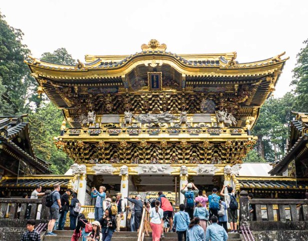 About two hours by train from Tokyo is the town of Nikko, and near Nikko there is an extensive UNESCO World Heritage Site consisting of two shrines and a temple, with a total of over 100 buildings. The star of them all is the Tōshō-gū Shrine. The imposing entrance to the shrine is the Yomeimon Gate, symbolizing the passage from the mundane into the sacred. One should not pass lightly through a gate such as this, but these days most people do.