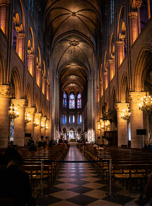 In 2008 I go inside Notre Dame de Paris and shuffle along behind a few hundred other tourists. My only photos of that time are of the stained glass windows, and I have no memory of actually seeing the interior. We didn’t climb the tower because of the long line-up. On our 2019 visit I’m determined to see inside no matter how long I have to wait. It’s winter in Paris; there is no line-up! How sad and appalled I was by the fire just two months after we were there that has seen the closing of the cathedral until further notice. How lucky and grateful I am that I finally got to see the glorious interior, and climb the tower before that happened. May this Gothic grand dame of cathedrals be repaired soon and be better than ever. May the repairs be a gigantic perfect piece of kintsugi!