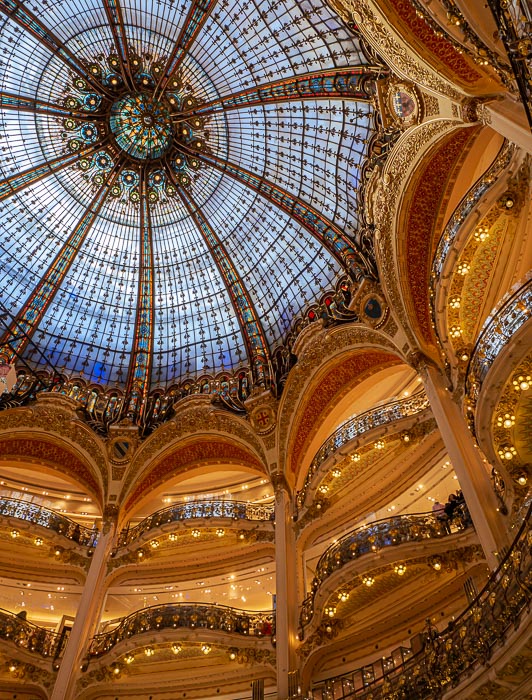 It took a long time and many visits for Galeries Lafayette to get to the top of my Paris wish list. I didn’t understand why a department store would be a tourist attraction. Back in 1893 two cousins decided to establish a novelty store on Rue La Fayette. They called it Aux Galeries Lafayette. It was a great success, and after the purchase of several adjacent buildings and years of refurbishing, the ambitious and enormous Galeries Lafayette was officially opened in 1912. The architects designed the Art Nouveau store around a glorious neo-Byzantine 43-metre high dome. When I finally see it, it literally takes my breath away. I hardly know how to hold such splendour. How does one take it in, this artistic and creative brilliance? I can only stare in gratitude for such beauty. If all department stores looked like this I might go shopping more often.
