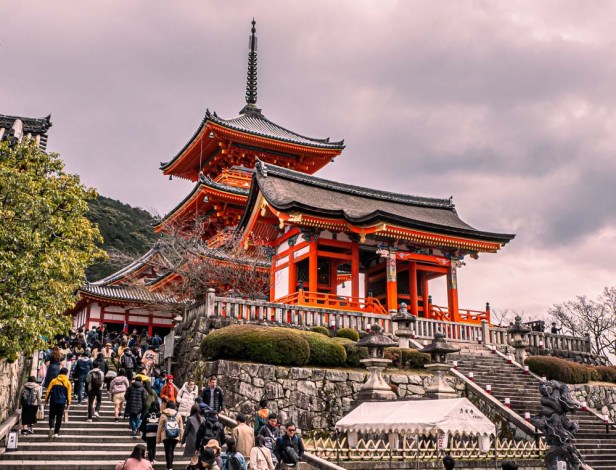 Kiyomizudera Temple, one of the most celebrated sites in Japan, was founded in 778 CE. Spread gracefully over the side of a mountain in eastern Kyoto the temple comprises thirty Buddhist buildings. Most of the temple buildings have been burned to the ground and rebuilt time and time again. Those that still stand date from the 1600’s, a testament to the perseverance of the faithful, and the deeply held recognition of the site as sacred.