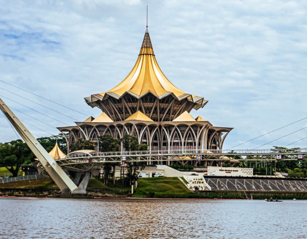 The Sarawak State Legislative Assembly Building in Kuching was opened in 2009 and dominates the riverbank. The building is a nine-pointed star with a roof echoing that of a traditional Malaysian royal umbrella, a cultural icon of both Kuching and Sarawak.