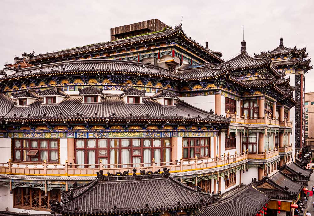 From the top of the ancient city walls that surround the old city of Xi’an one can look down on the Yongning International Art Museum, an exquisite example of traditional Chinese architecture.