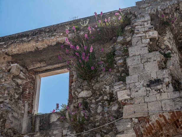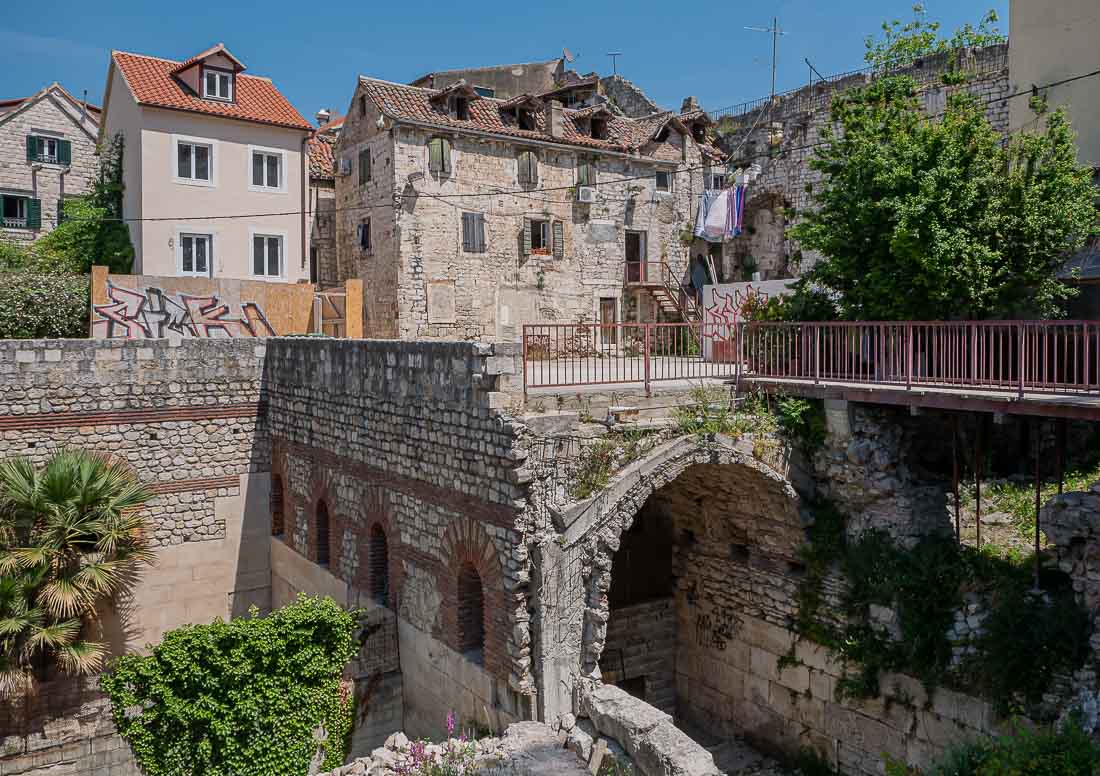 Everywhere we walk in Lučac, the Old Town that is both within the original area of Diocletian’s Palace and spreading beyond it, and Varoš, we see a huge range of architectural styles, but more than that there’s a huge range in the age of the buildings. Apart from the remains of the Roman buildings that are upwards of 1700 years old, there are also buildings that are three or four hundred years old that have never been renovated, and those that are crumbling and clearly nature is winning.