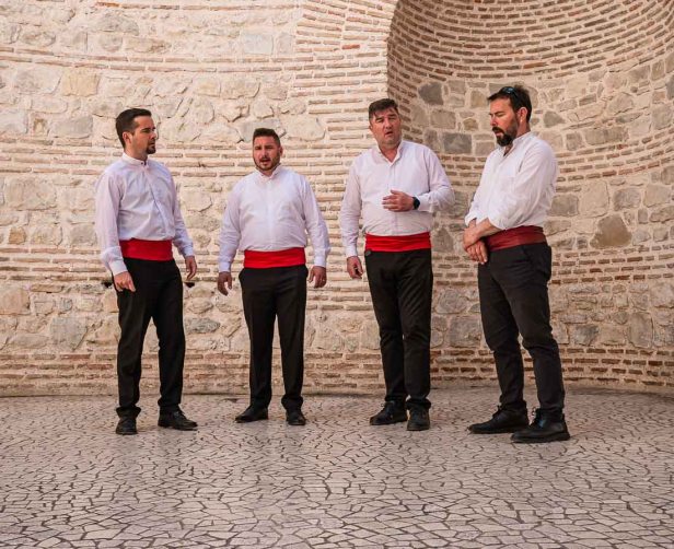 We walk in and find ourselves in a musical heaven. In this domed space with perfect acoustics a local a cappella klapa group is singing traditional Dalmatian songs in strong sweet voices and divine harmonies. So we rest here awhile and listen.