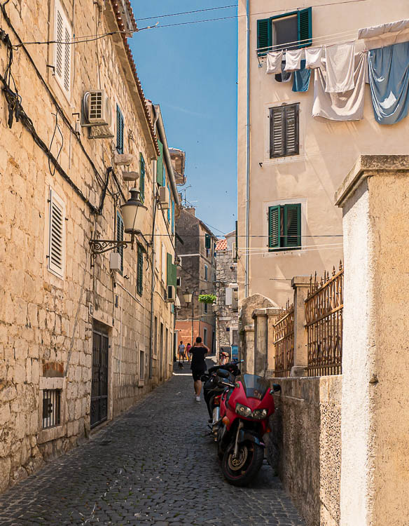 There’s a newly developed part of Varoš on the lower slopes of Marjan Hill and we climb around there for the better part of an hour looking for this ancient neighbourhood, looking for something charming, something with character and history. Eventually we discover it in the area where Varoš turns northward and abuts the Old Town; and in parts here it is ancient. The laundry tells me that even buildings this old – three or four hundred years? – are still inhabited.