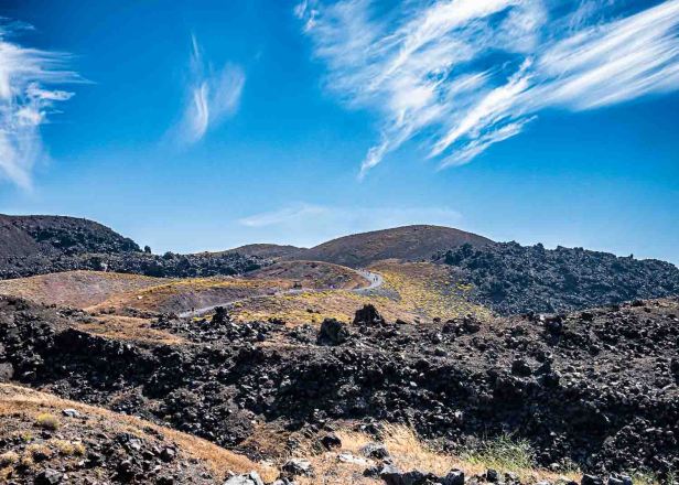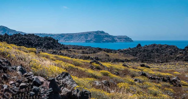this small island of volcanic rock with spectacular views. Not much grows here, though to my utter delight we come across carpets of yellow wildflowers,