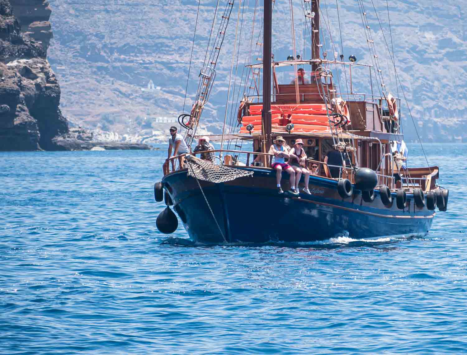 We did an all-day cruise around Milos – probably paid a lot more but it was fabulous from start to finish. This one in Santorini was def the low-cost tourist ride.