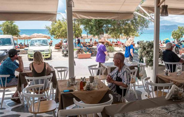 15 Euros and only for customers. 10 Euros only for food customers. 15 Euros if you have drinks and only for customers. 20 for non-customers. And so we walk on beyond these offers looking for something better. At last we find it – really comfortable sun beds, front row by the water, only 10 Euros no strings attached. So of course with this kind of generosity we actually want to eat at the host restaurant across the road.