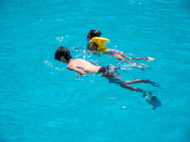 and even with flippers and two pool noodles I discover that I’m not as fit as I thought I was. But I am determined, and eventually make it huffing and puffing back to the boat.