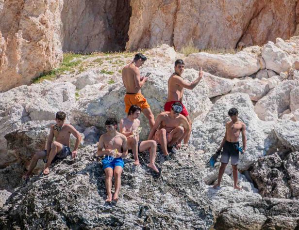 and the Greek-Canadian lads from Montreal climb barefoot on the rocks.