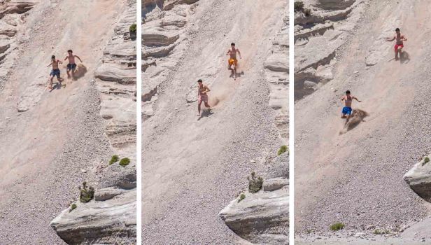 And then suddenly Dora is racing down the hill, legs pumping, sand flying! It takes no time for all the others to follow her.