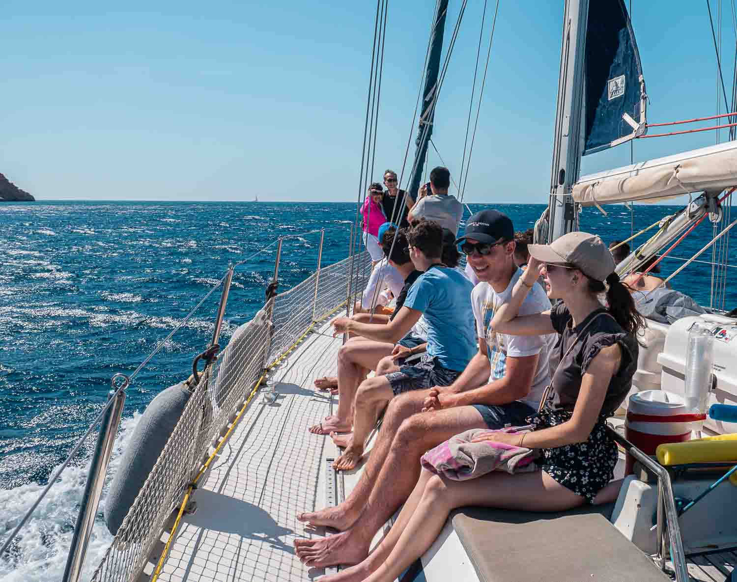 It’s the best day. It’s one of those days when everyone is happy. How could we not be? Sailing around this beautiful island on a brilliant day, the light glinting off the water, the water so blue it’s almost too dazzling to look at. We are all enchanted, contented, delighted with everything.