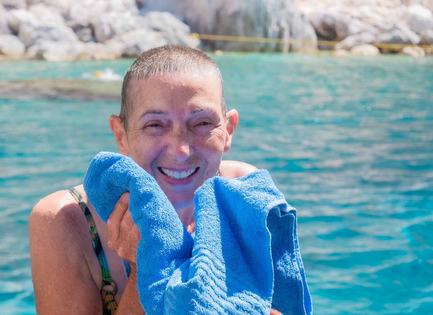Thanks Lexie. One of our fellow passengers took that pic of me. It was a happy day. The water was actually a little cool, but so inviting I had to get in. Don unfortunately couldn’t because of his hernia problem at the time, but I don’t think he minded too much. It was just such a lovely day out.