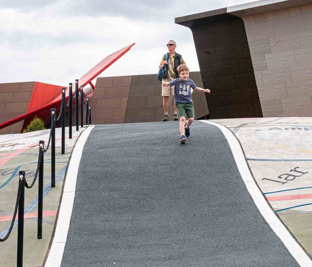 From here we arrive at the central courtyard known as the Garden of Australian Dreams. It’s a misnomer really since it’s not a garden at all in the conventional sense, but a vast undulating symbolic landscape; a stylised map of the country,