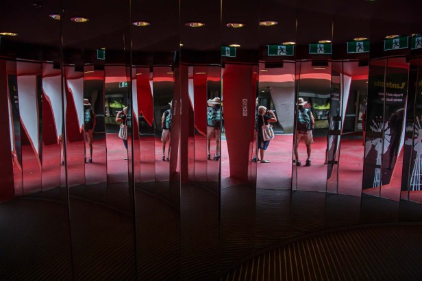When we arrive I can see immediately that it is an unusual and interesting building. I am definitely intrigued. But what we come to first is the mirror wall. And is this ever fun!
