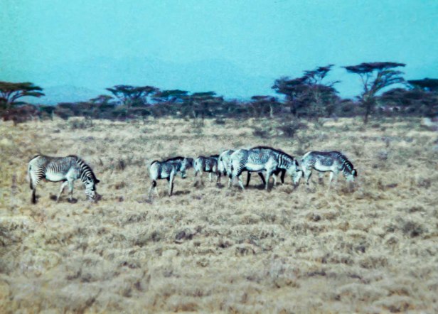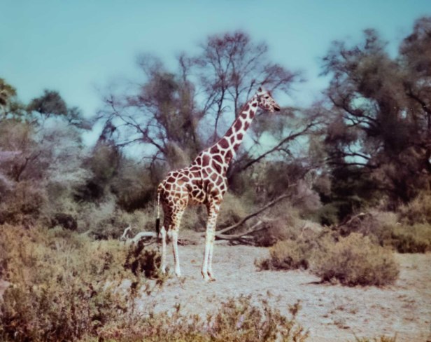 I want to get my disappointment out of the way first. We don’t go to Ngorongoro or Serengeti in Tanzania, and we also don’t go to Maasai Mara in Kenya. These three, with good reason, are the most renowned wildlife reserves in Africa, and the places that attract the most wildlife, and the most tourists. This was as true in 1980 as it is today, though the tourist numbers are vastly different. All three are quite a distance west from the main road north from Arusha to Nairobi, and we’re bound by the date we need to be in Nairobi to pick up the four people who are joining us there. Even so, I remember Craig’s comment to us – something along the lines of: we could go to the big game parks and see many animals, along with many tourists, or we could go to more remote places where we’ll be really lucky if we see a lion. Wait, what? No! Take me to where we’ll see the most wildlife! And yes, in Meru National Park we do indeed see a half-hidden single lounging lion, resting in the shade of an acacia tree a few hundred metres away. Lucky us.