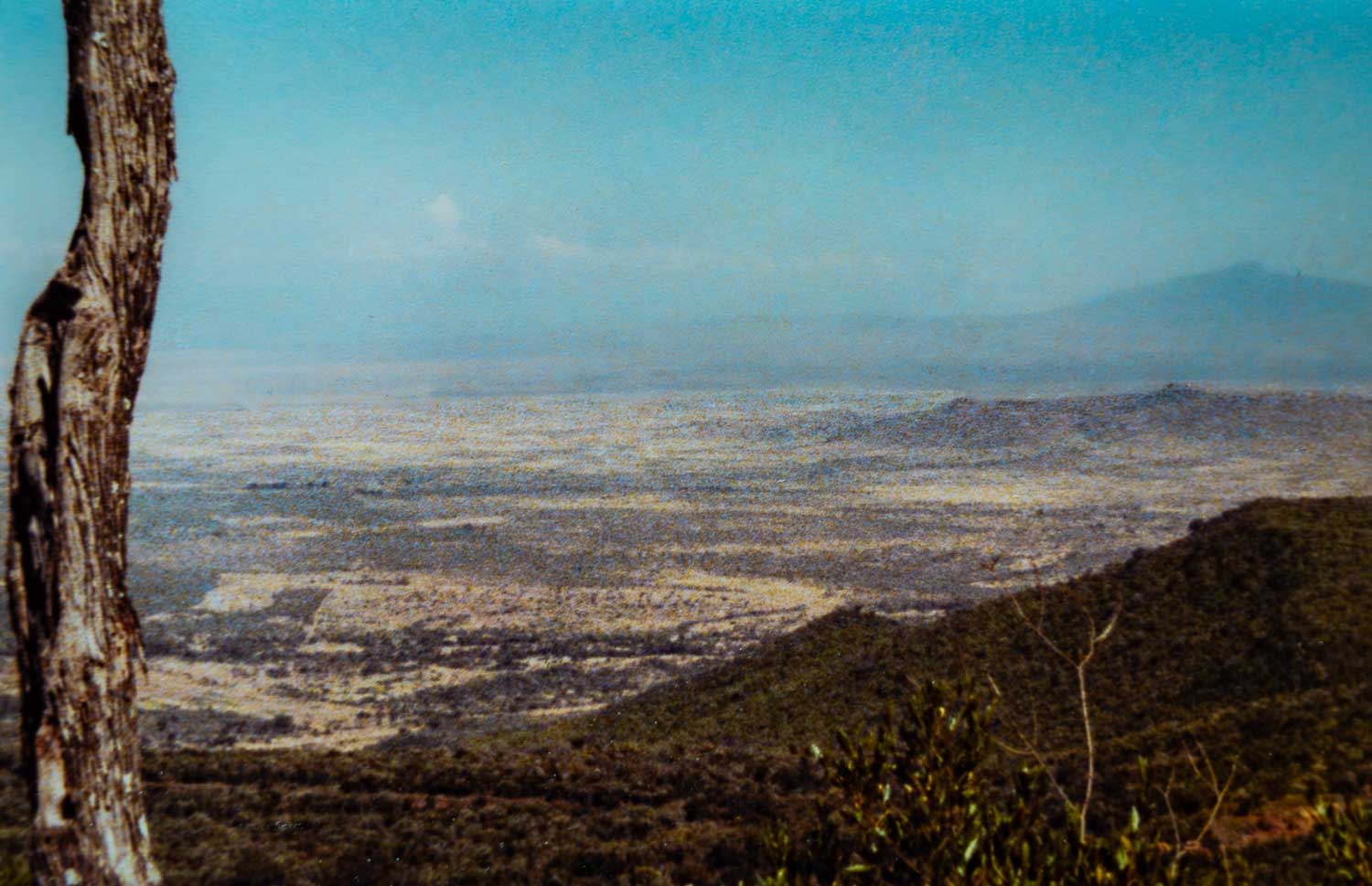 By late afternoon we’ve set up camp in Lake Nakuru National Park down on the floor of the Great Rift Valley. A rift valley is a crack in the earth’s surface, and the one in Africa is the biggest in the world, extending from Jordan to Mozambique, a distance of 6,400 kilometres (4,000 miles). The earth’s tectonic forces are trying to create new plates by splitting apart old ones; the valley is created by tectonic forces rather than by erosional forces as most valleys are. But all I know is that it seems as if I’ve been hearing about this mythical place since childhood – the Great Rift Valley – and here I am at last, first looking over it,