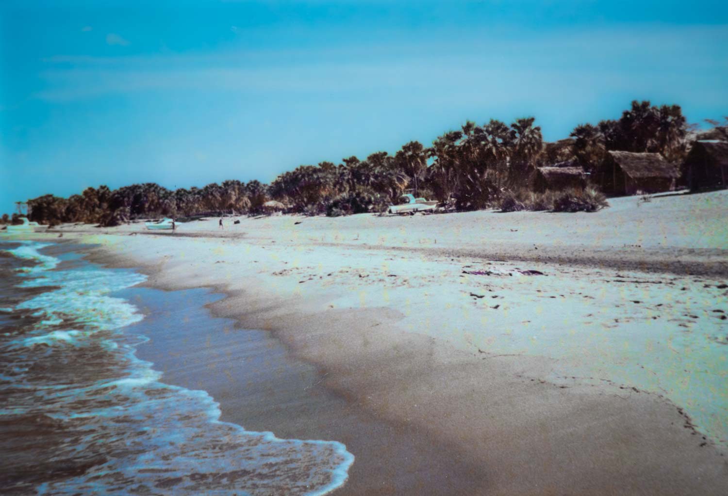 Two whole days in heaven; gentle waves lap the shore, the long grove of palms provide shade, blue water before us, blue sky above. We pitch our tents on the almost deserted beach and settle in. There are some very basic facilities, but they are enough for us.
