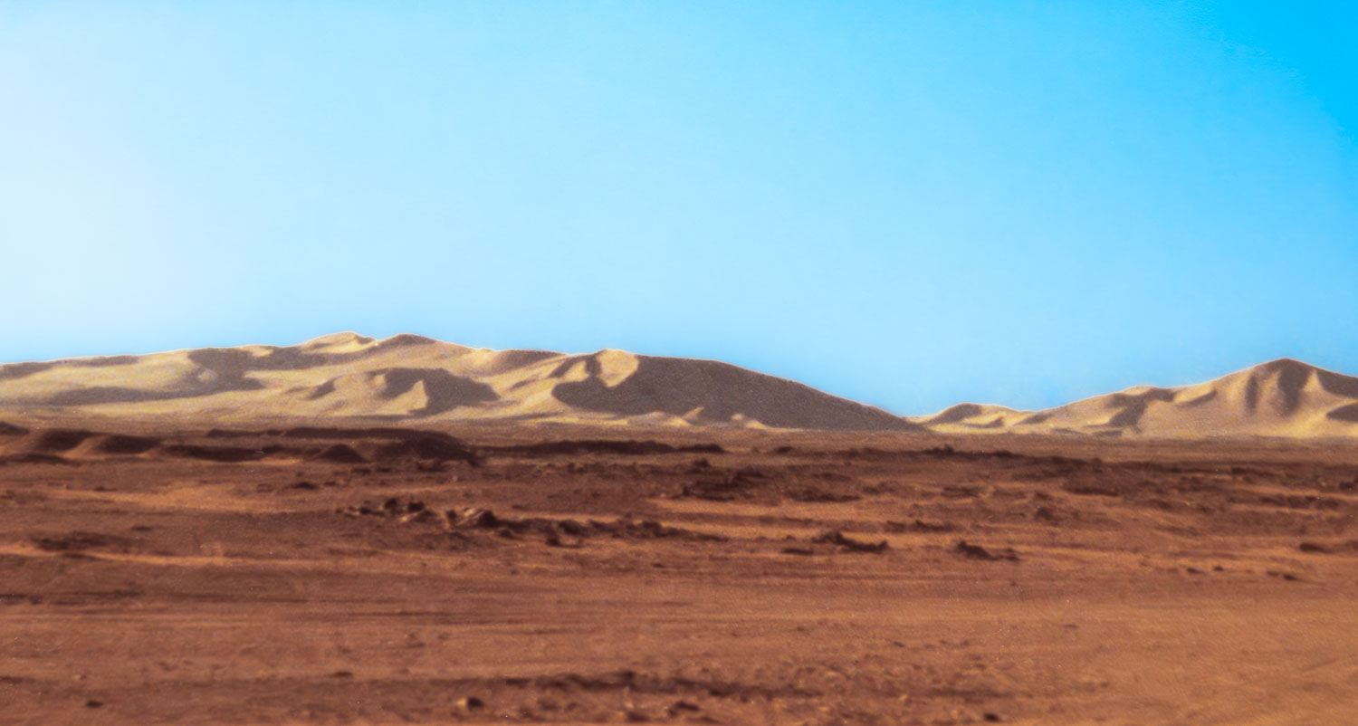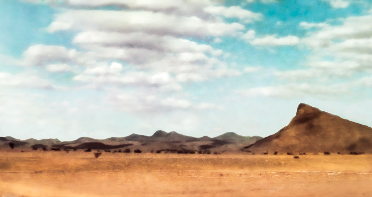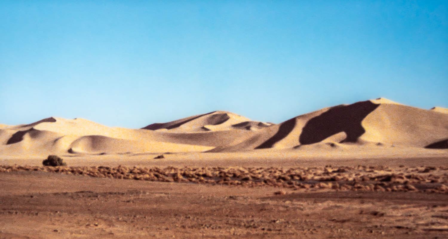 Beneath a blue, blue desert sky