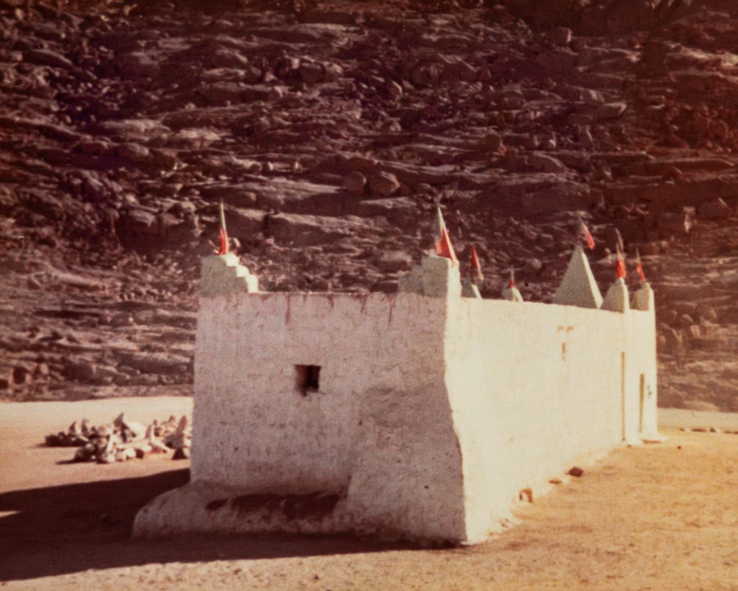North of Tamanrasset is a small white building, a rare manmade structure in the desert. It is the tomb of Moulay Hassan (not to be confused with the current prince of Morocco) a marabout, or Muslim holy man, who died while on a pilgrimage to Mecca. It has become traditional to circle it in your vehicle three times for luck. So of course we do. Who would want to risk not doing it?