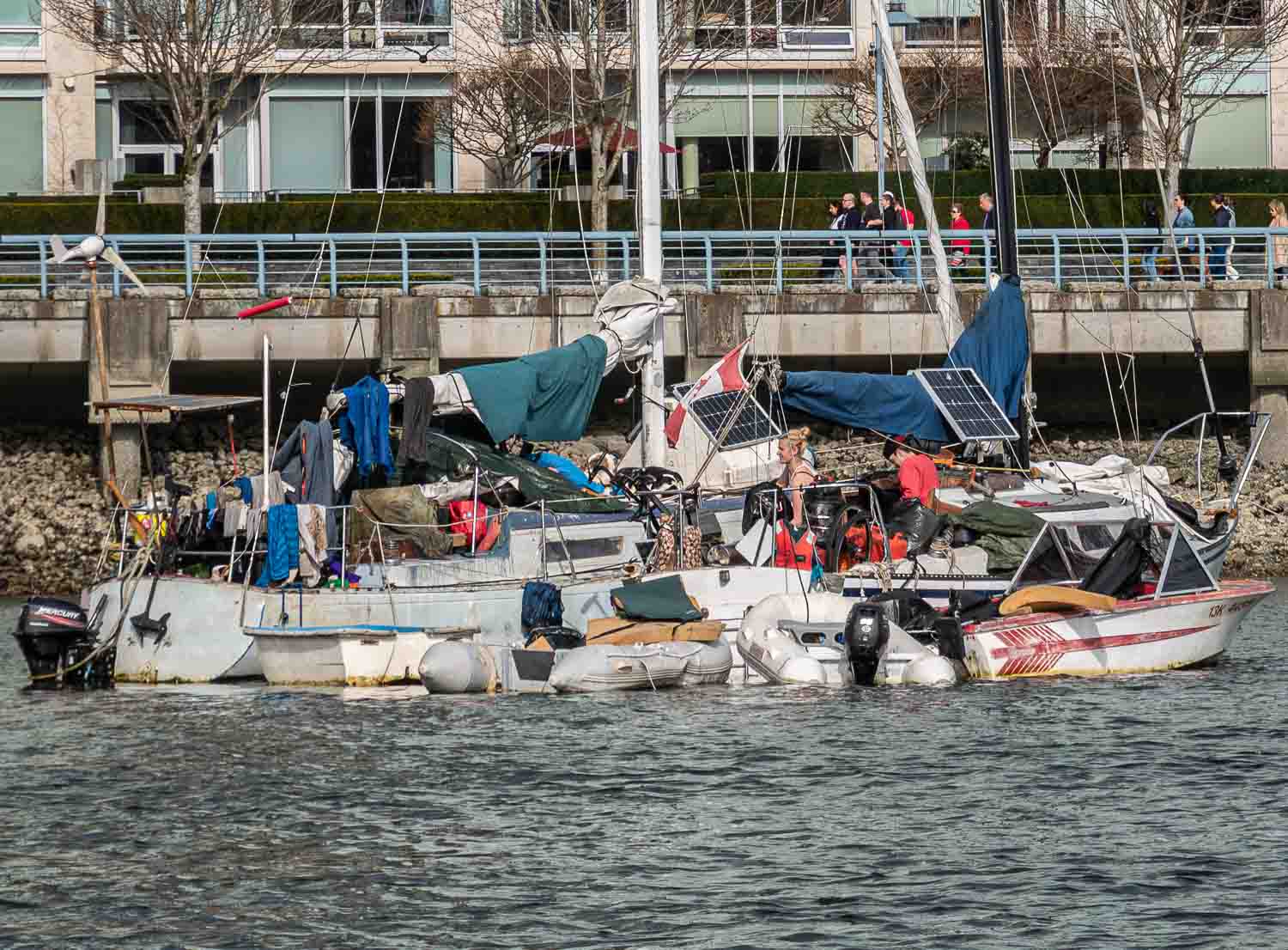 and the always controversial live-aboard boats that are home to a community of travellers, artists, disheveled dreamers and self-described pirates. They usually don’t have anchoring permits, and the city knows it’s dealing with an ongoing problem of unauthorized anchoring. There’s this: responsibility is shared between the City, Transport Canada, the Coast Guard, and the Vancouver Board of Parks and Recreation, none of whom really care about the people who live aboard. It’s a mess of jurisdiction. And a fascinating, if challenging, life-style choice.